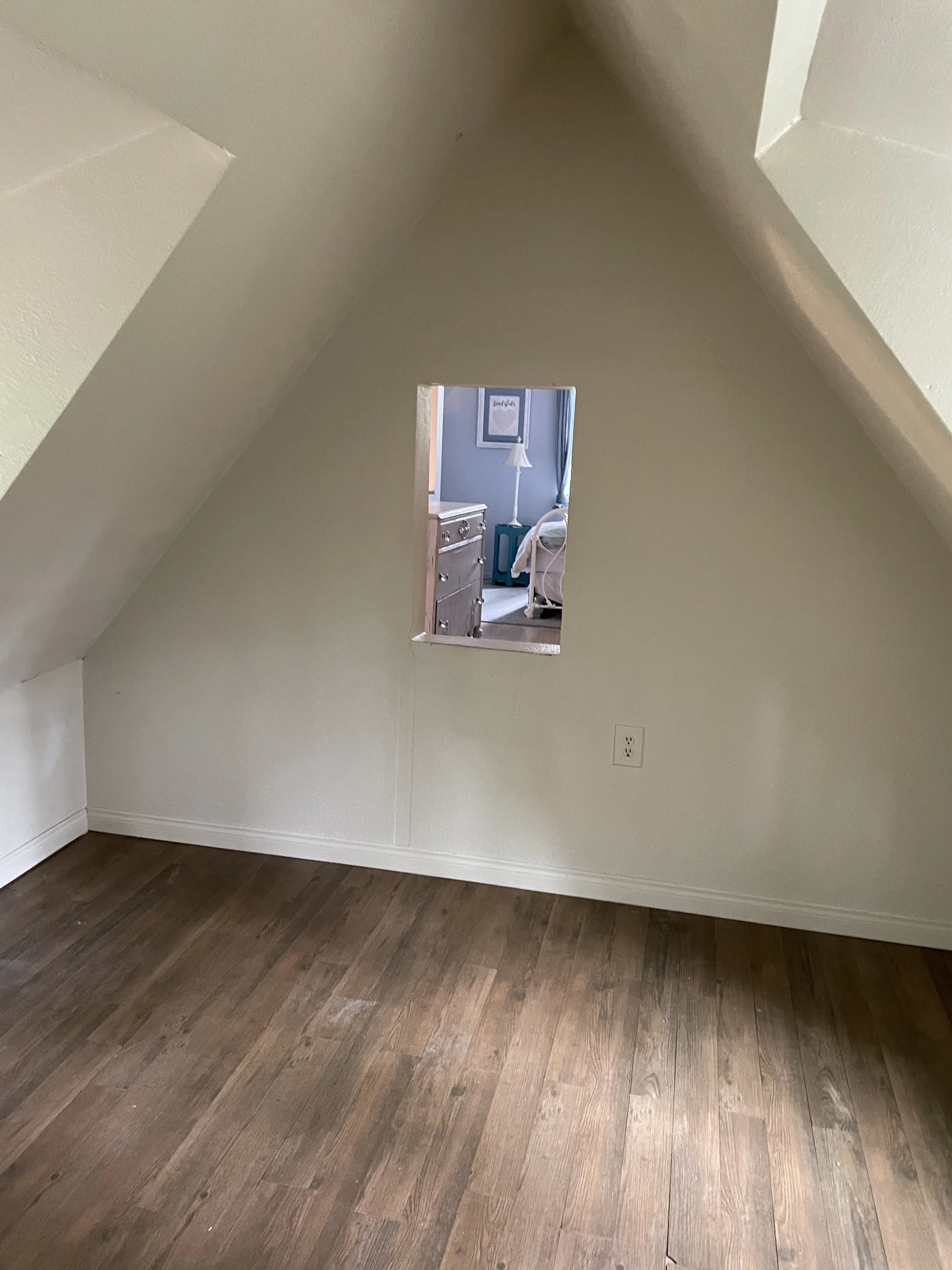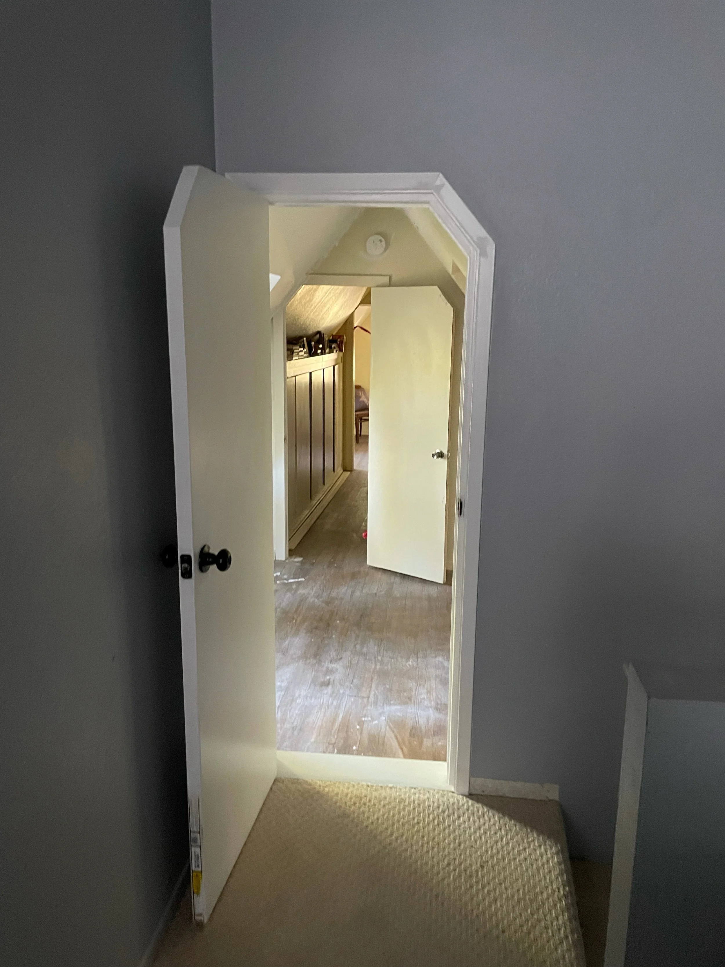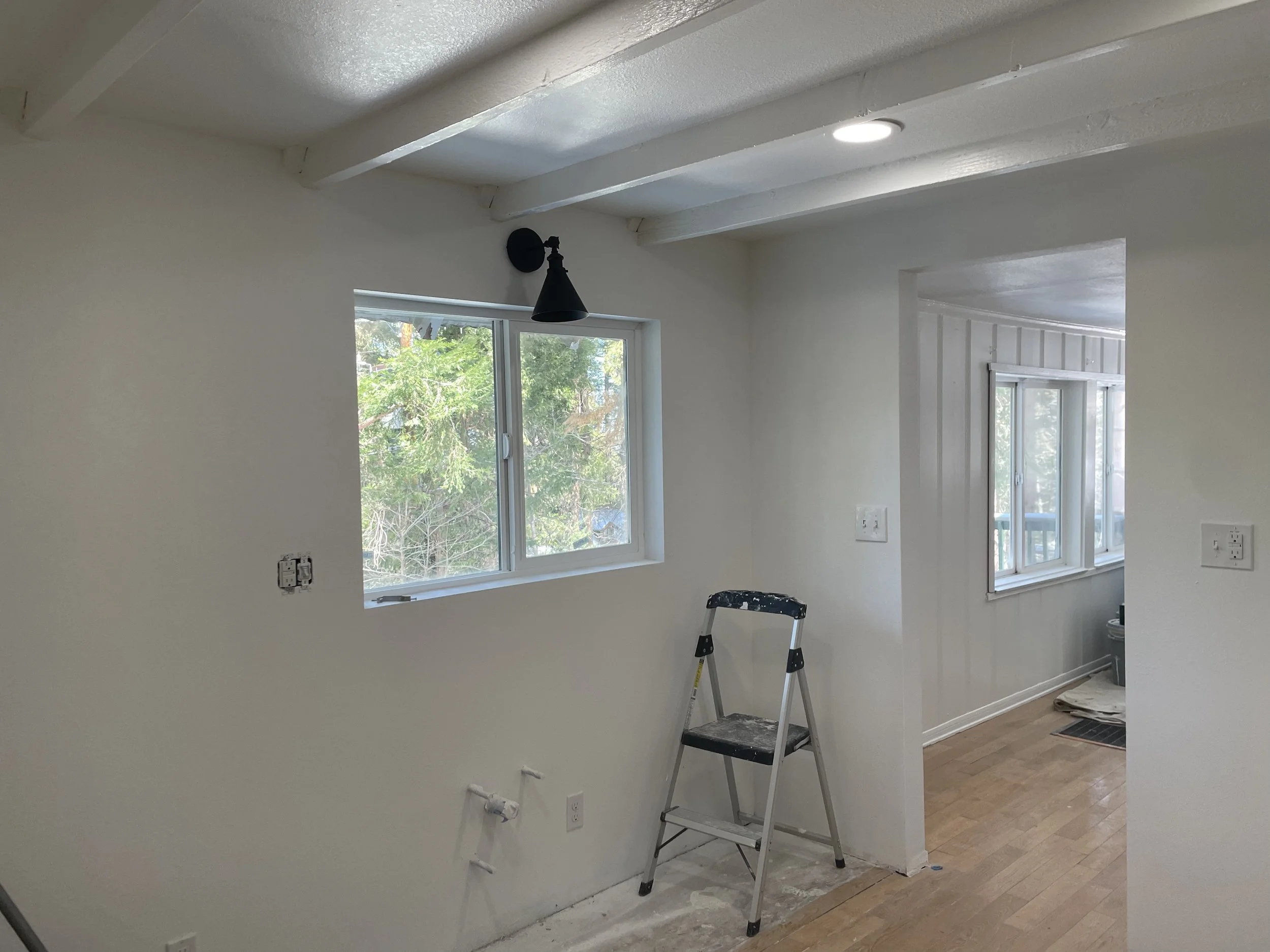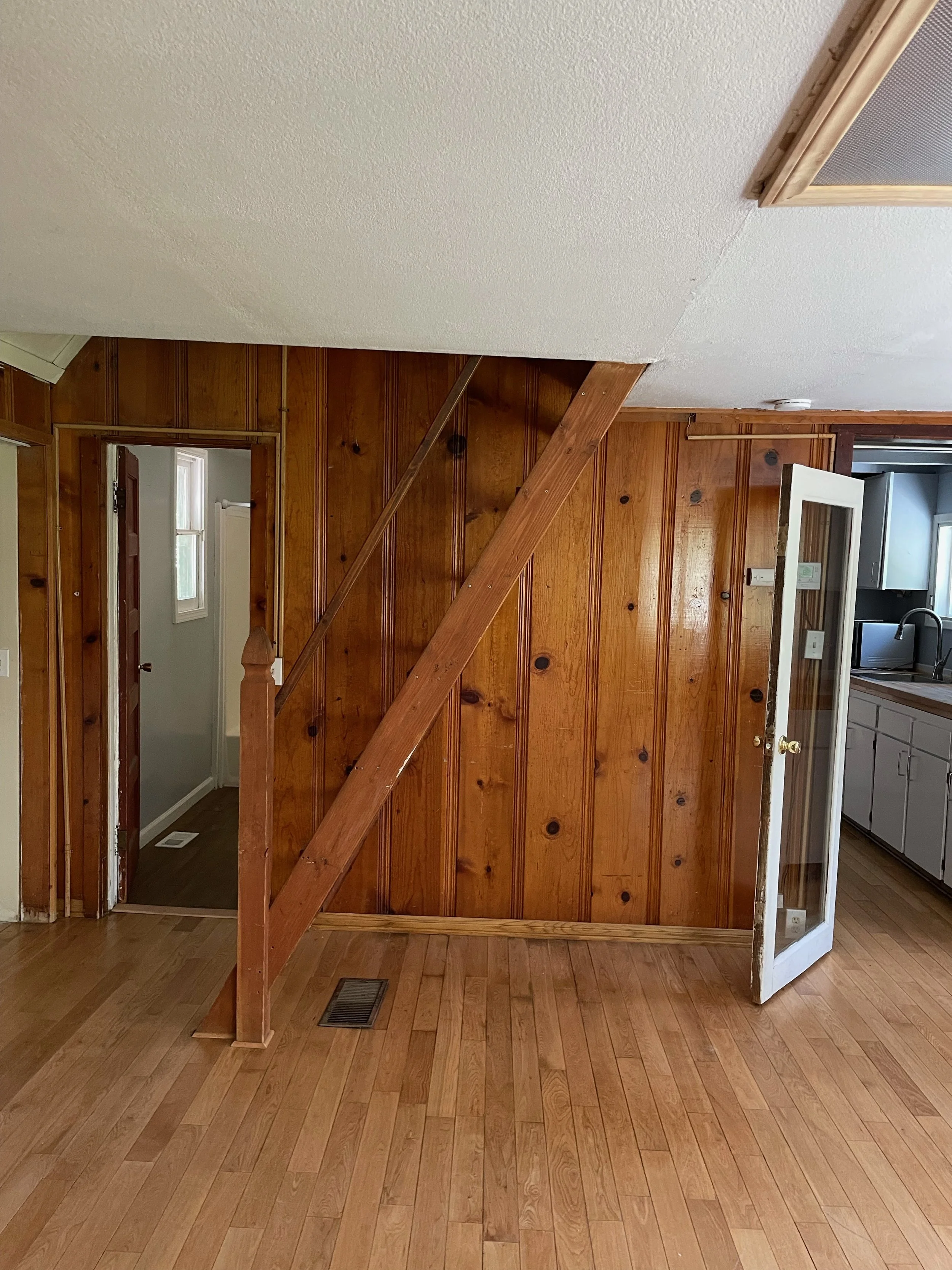 The Plan — Open up the small kitchen by adding additional windows and recessed lighting. Rebuild the staircase to access the bedrooms upstairs and create a closet underneath for additional storage. Upgrade windows, flooring, heating system and create a modern but rustic updated vintage farmhouse.